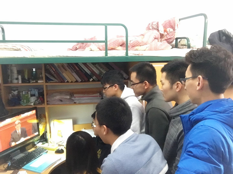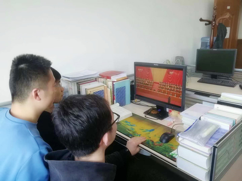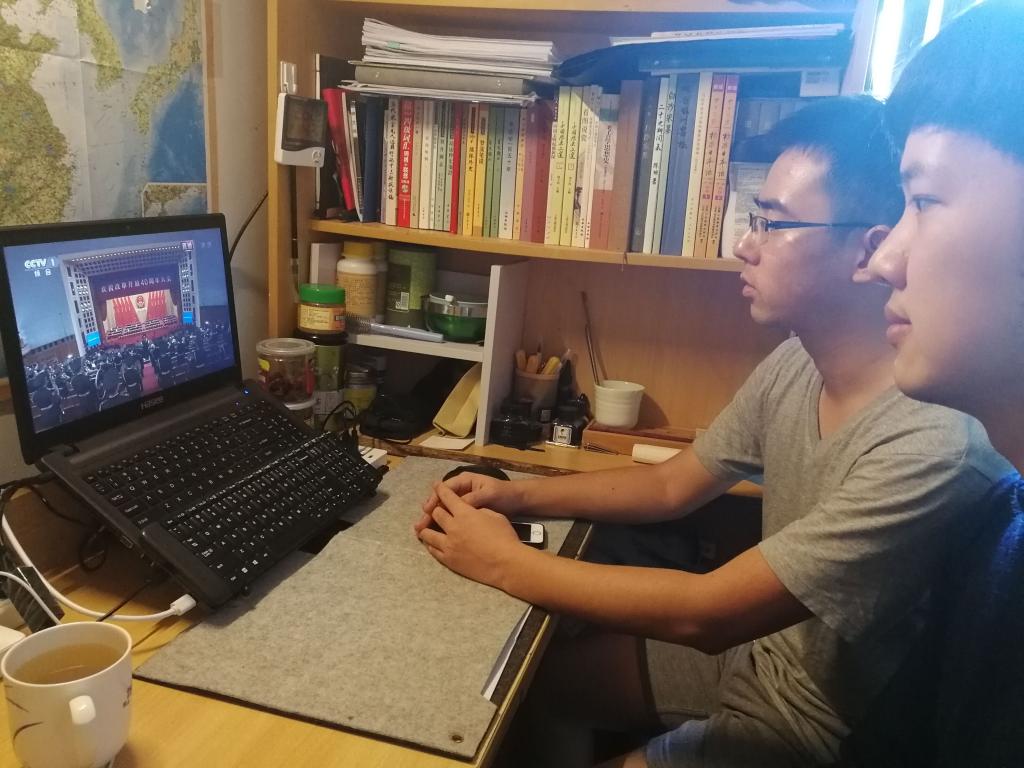 学院党委理论中心组成员、各支部书记、行政教工党员在匡亚明楼274会议室进行了集中收看。在校的学生党员和在长春的教师党员集中在寝室或者家里收看。在国外和国内外地交流、实习的老师和同学,也都积极自觉地或跨时区自学、或加入实习所在地的学习小组进行观看。