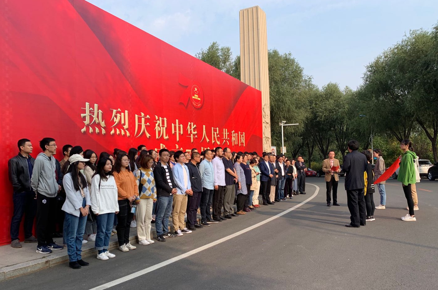 的杨建华教授、吴振武教授、陈国庆教授、赵宾福教授、冯胜君教授等著名学者和学院全体在校师生党员来到中心校区正门“热烈庆祝中华人民共和国成立70周年”宣传板前,开展了重温入党誓词活动。