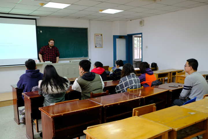 本次沙龙活动主要交流以下两个问题:比较他曾经工作过的各个国家考古工作的异同以及介绍他正在进行的辽代陶瓷铅中毒的研究。在沙龙未正式开始之前,罗斯-谢菲尔德早早到达教室并与先期到达的同学们交流,亲切地询问同学们家乡及考古知识方向爱好,并纷纷给予赞赏。