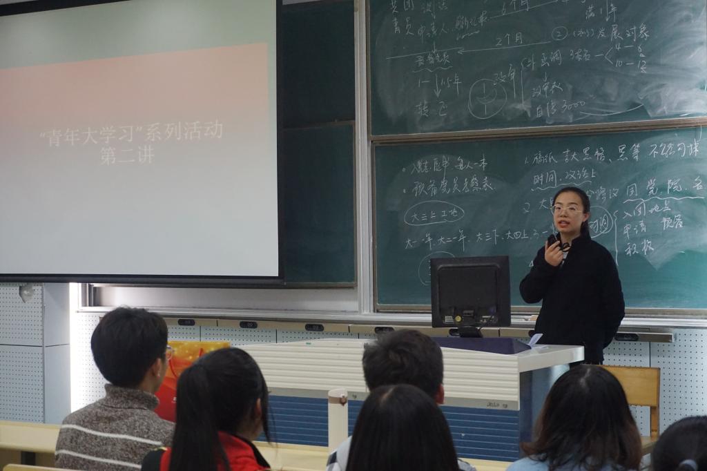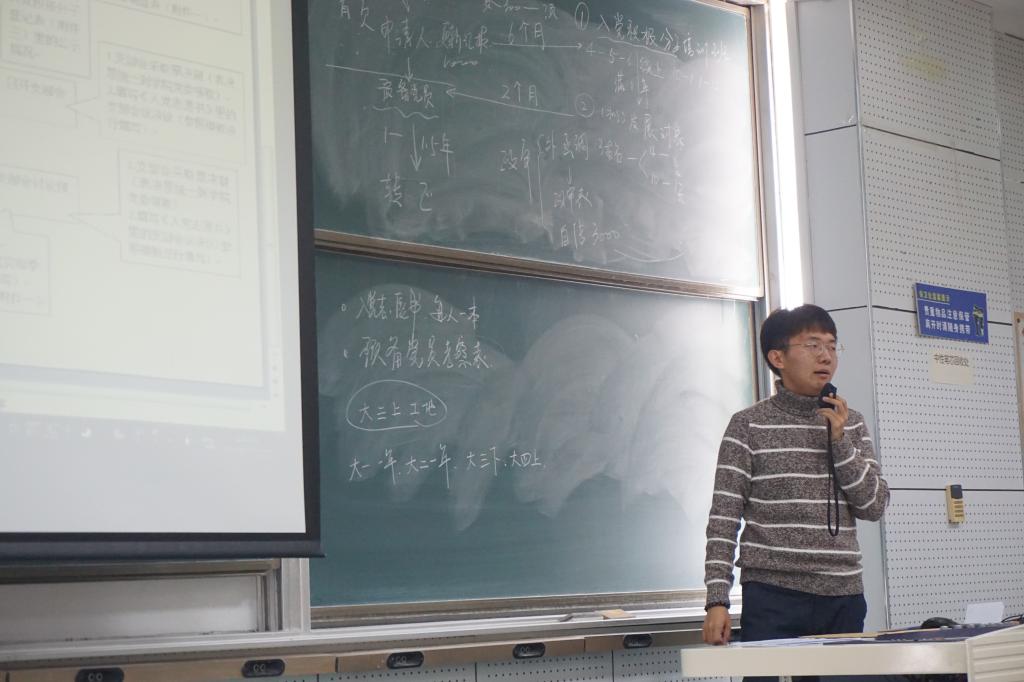 文学院暨新闻与传播学院团委副书记,2016级新闻学专业曲昭琦学长为同学们讲解大学生入党的流程,以简洁明了的时间线为大家勾勒出从申请人到正式党员的流程及所需时间,并介绍了入党申请期间的各种所需资料与注意事项。最后,曲昭琦还耐心地为同学们解答了疑惑。