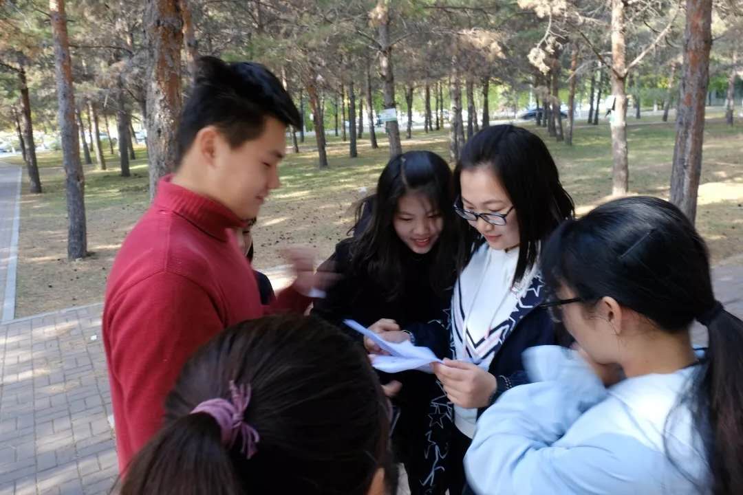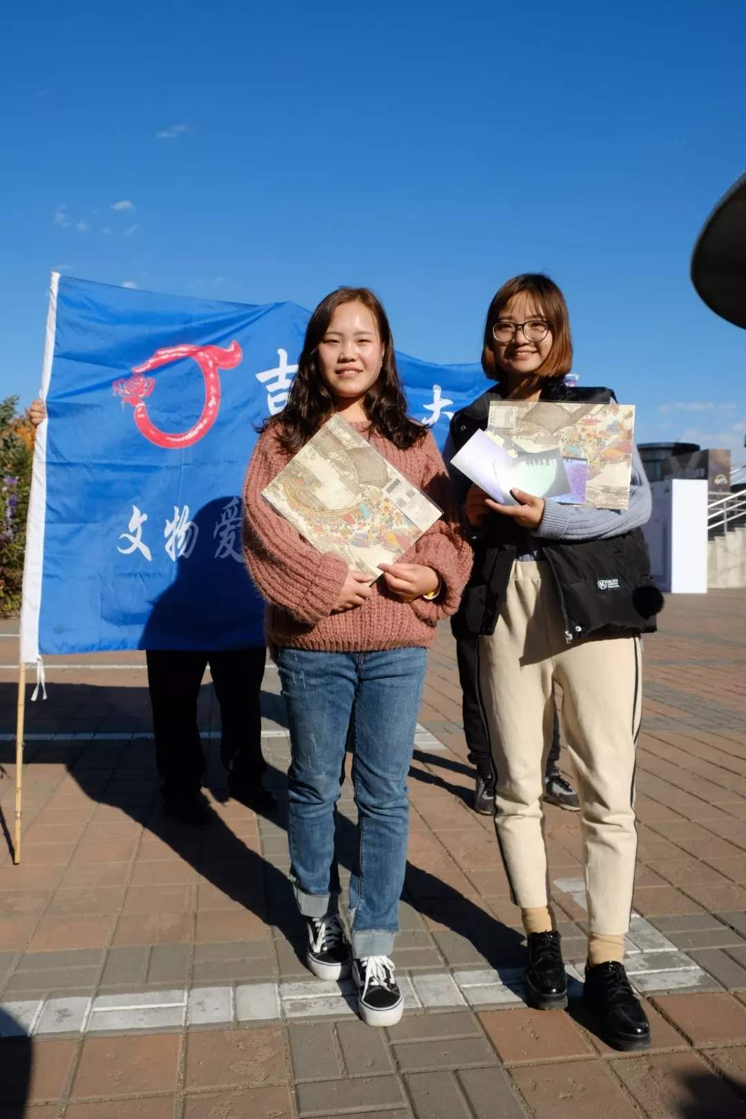 张雅婷同学获得第二名,汉语国际教育硕士胡娇、韩国梅同学获得第三名。结束时,所有关卡处的志愿者一起来到体育馆门前合影留念,并领取到文物爱好与保护者协会专属精美明信片一张。