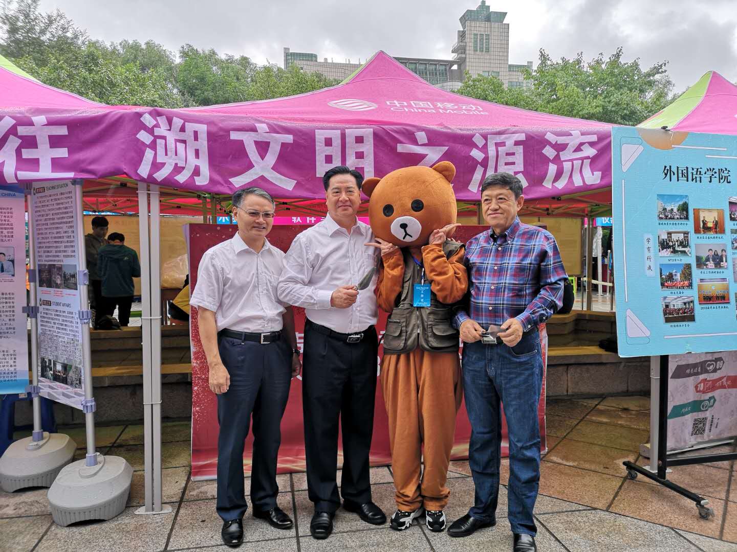 院长赵宾福、书记王剑、副院长段天璟至五月花广场参与当天的迎新工作,看望迎新志愿者并向前来报道的新生表示欢迎和问候。