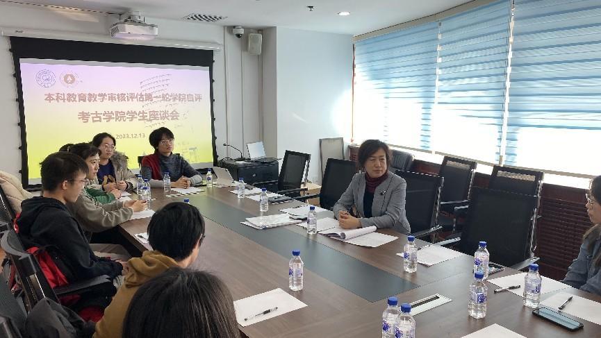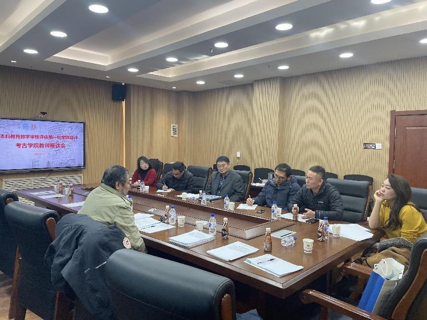 1608会议室举行。院长赵宾福、党委书记王巍、党委副书记兼副院长侯建峰、副院长张全超、副院长彭善国、副院长方启和文博遗产系主任李亚利,以及本科生教学办公室相关人员参加自评论证会。会议由专家组组长蔡大伟主持。蔡大伟首先对本次现场考察工作作出具体部署。郝陶群代表学校对学院自评及评审工作提出了要求,强调本次校内考察通过查阅资料、听取汇报、师生访谈等方式对学院整体教育教学工作开展考察,真发现问题和发现真问题,帮助指导学院制定改进措施并持续改进。