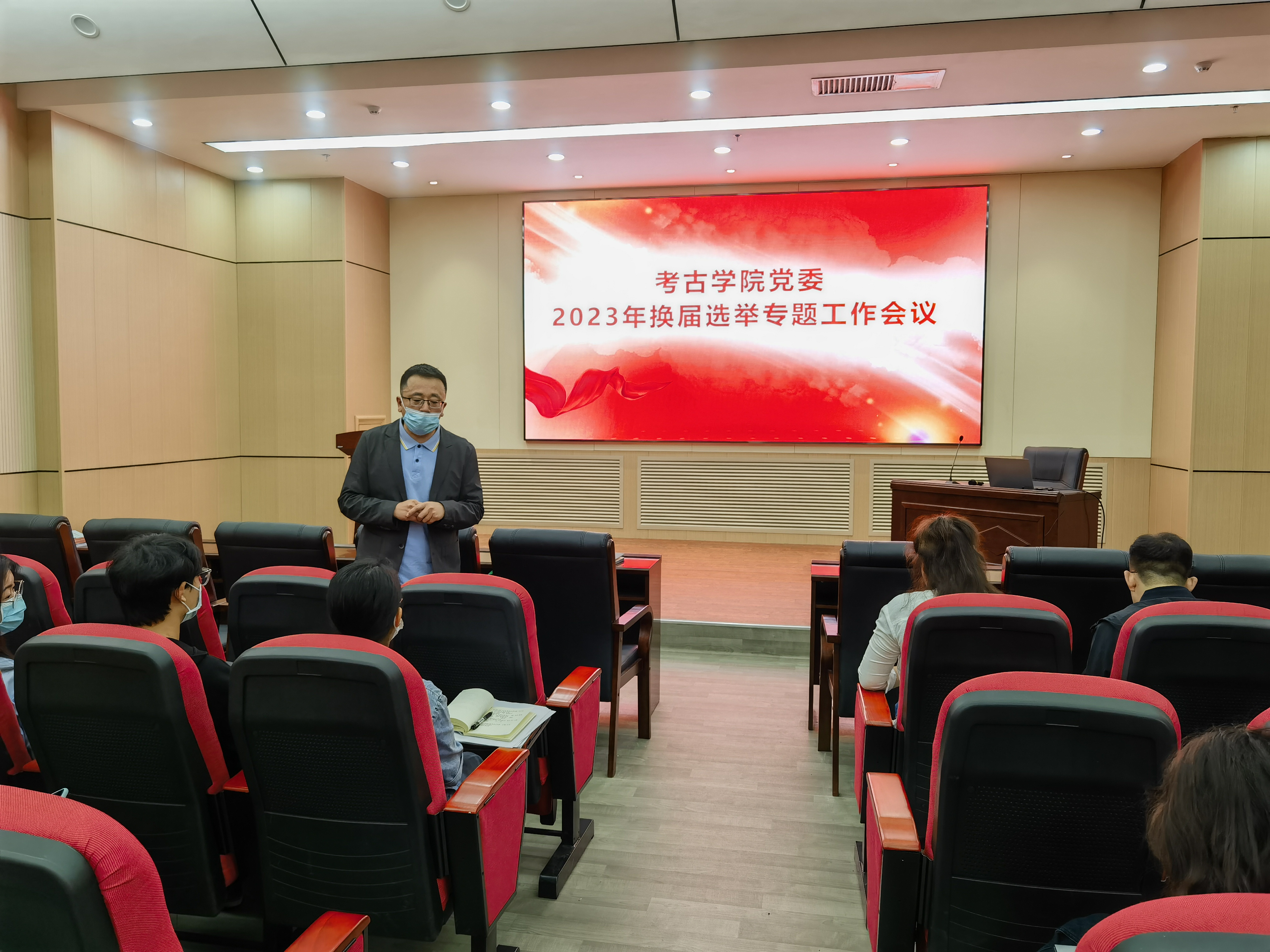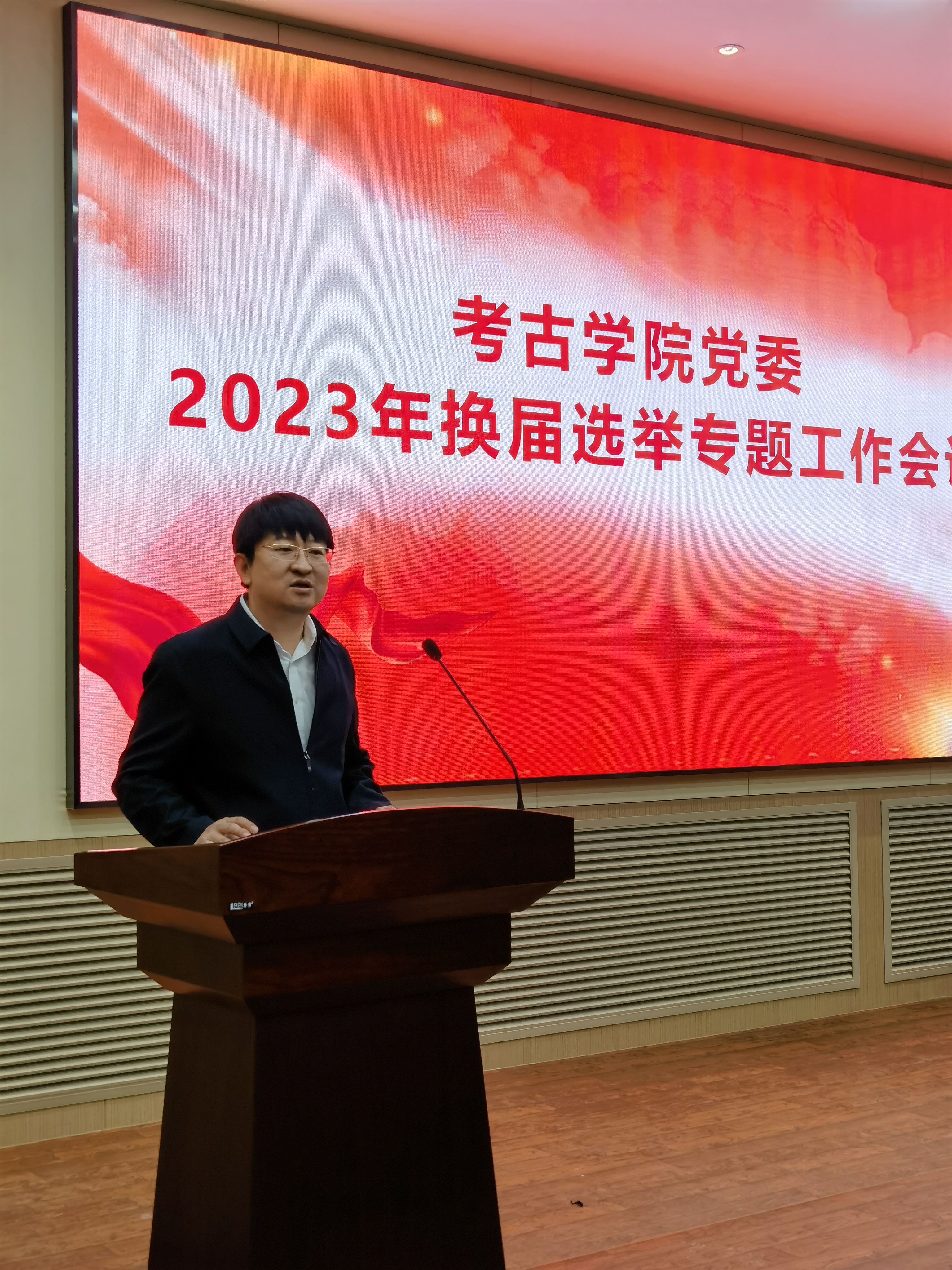 2022-2023年院级党组织集中换届选举工作实施方案》,并且就此次换届工作组织机构及职责、换届选举工作原则及安排、换届选举工作程序、职数及候选人的资格和条件、换届工作要求等方面进行了详细解读。他指出,党委按期换届,是严肃党内政治生活、加强基层党组织建设、保障党员民主权利的一项基本制度,是推动全面从严治党向基层延伸的必然要求。王巍代表学院党委对换届工作提出三点要求:一是要统一思想,提高政治站位;二是要严格工作程序,充分发扬民主;三是要严肃组织纪律,确保风清气正。要严格按照《中国共产党章程》和党内有关规定组织换届选举工作,严守政治纪律与政治规矩,切实保证换届选举工作依规、有序开展,坚决维护换届工作的严肃性,确保换届选举工作顺利进行。
