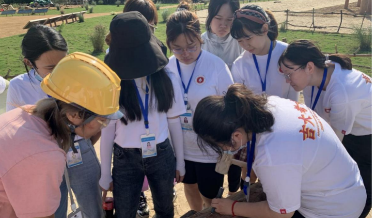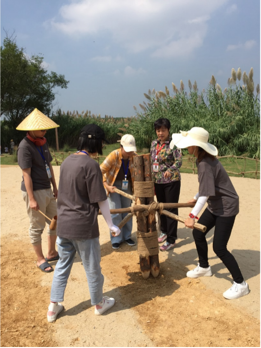 吕军教授带领学生体验户外活动面夯筑