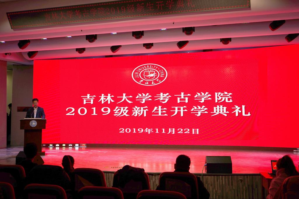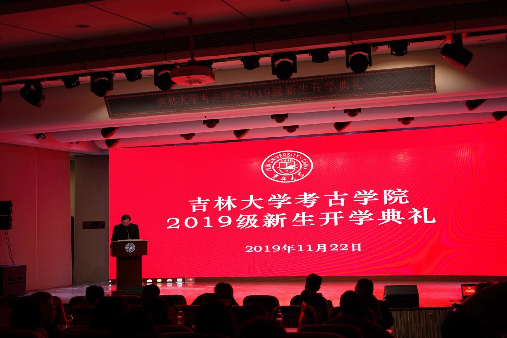 学院院长赵宾福教授致辞,赵宾福教授首先代表学院对2019级的新生表示热烈的欢迎,并借用著名社会学家费孝通先生“各美其美,美人之美,美美与共,天下大同” 的话语,引申阐释,用以指引同学们在吉大考古塑造自己的美、践行考古工作者的初心与使命。同时,他希望同学们善于去理解和发现他人的美,希望同学们不要成为精致的利己主义者,并鼓励大家诚实做人、踏实做事,收获更好的自己。