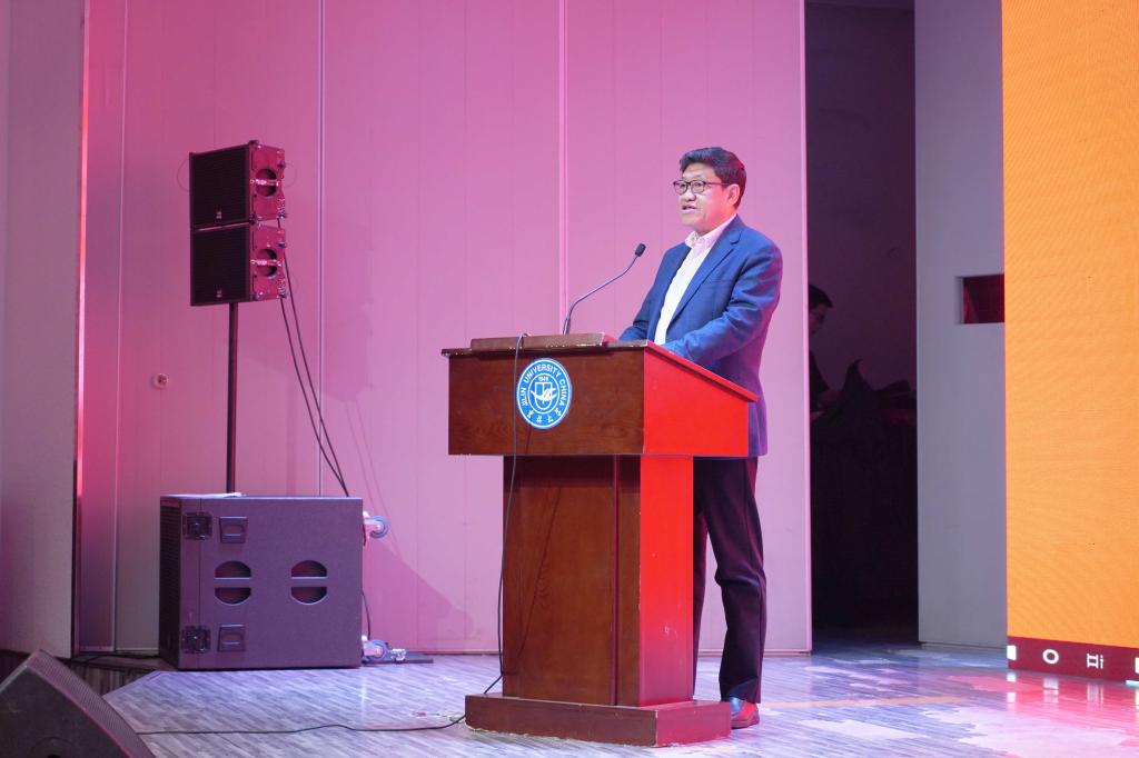 2019级新生开学典礼暨班主任聘任仪式正式开始。陈国庆教授作为教师代表讲话,陈老师在讲话中对2019级新生表示热烈的欢迎,并鼓励同学们要不负大好年华,努力学习、积极进取。