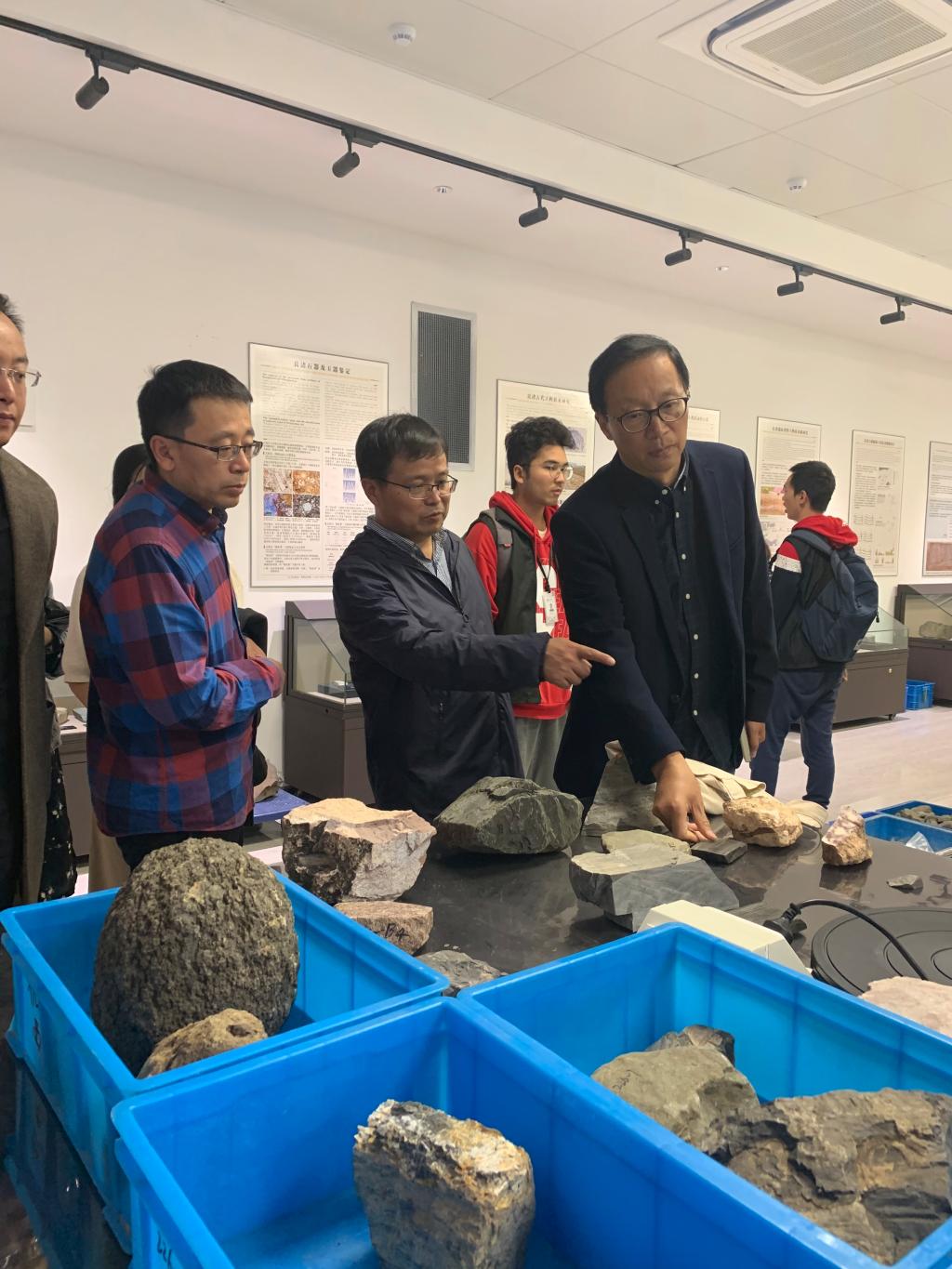 1997级校友)交谈,了解师生实习情况。2017级文物与博物馆专业本科生王思熠为大家进行博物馆讲解。