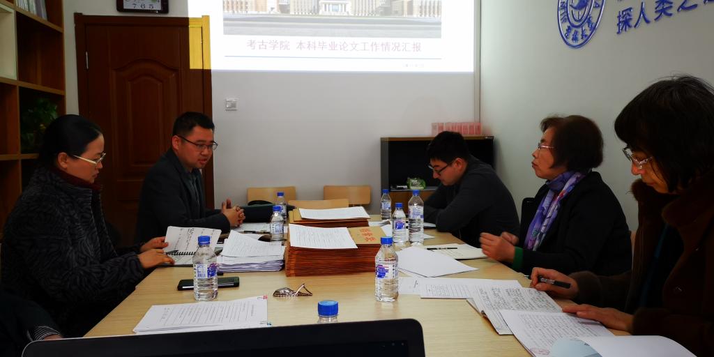行政楼1楼举行。会议首先由院教学副院长段天璟教授做整体情况汇报。段院长从我院的工作计划、实施情况、存在问题及采取措施几个方面进行汇报,并指出我院的创新之处,我院积极响应学校号召,高度重视本科教学工作,重视本科人才培养工作,重视人才基础夯实工作,重视提高本科论文质量水平,特制定一系列适应考古专业特点的举措,举办专业开题报告会,系主任集中点播,对学生论文方向整体指导和把控,学生们的写作思路得到梳理的同时,更认识到毕业论文的严肃性。