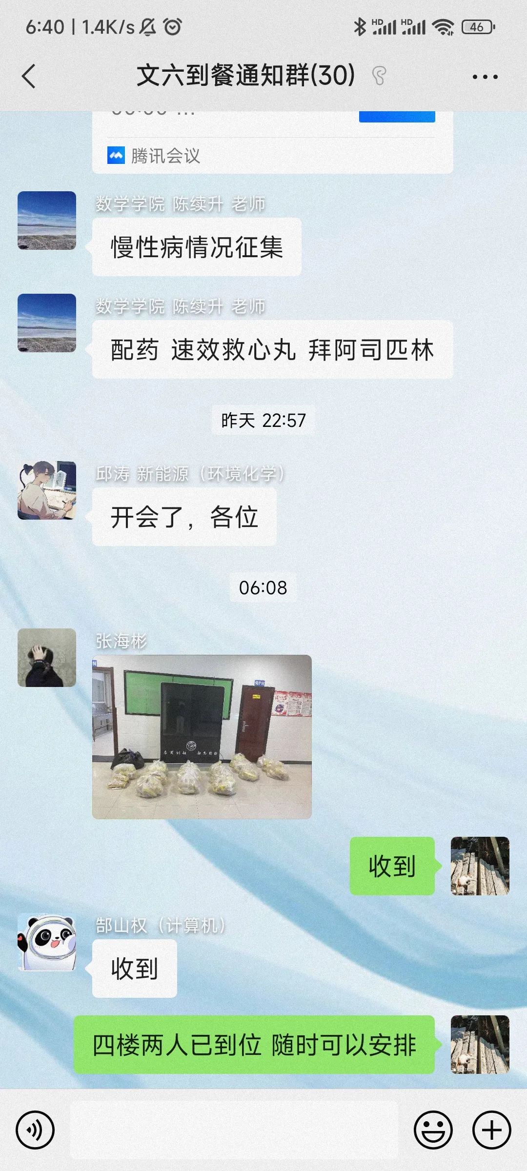 此外就是一些特殊需求如用药等等和通知的传达。志愿者们及时转发老师们的通知,及时将同学的诉求反馈给老师。