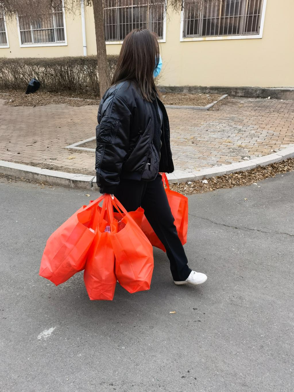 在物资发放前,各位老师分头前往超市进行集中采购,根据学生名额分别购买牛奶、饮用水、香肠、苹果、桶装泡面等食物,根据同学们的个性化需求购买湿巾、洗手液等日用品。十一时许,各位老师抵达大学城并将12个加油包整齐摆放至清洁区处,与公寓工作人员确认学生个人信息和寝室号码后,包裹由工作人员完成配送。当日中午,隔离学生纷纷发来反馈,表示已及时收到加油包,并对学院的关怀表示感谢。