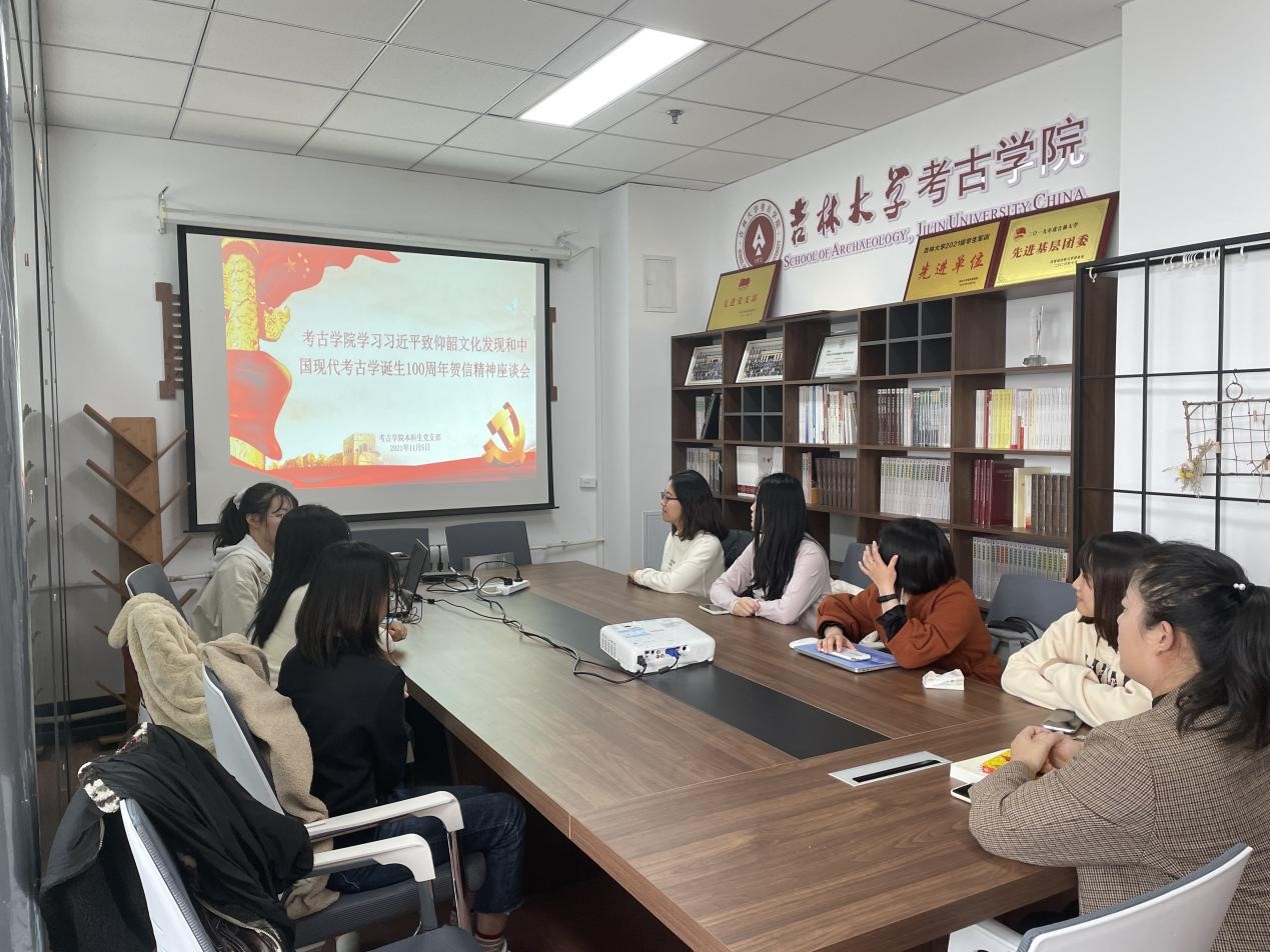 会议分发了习近平总书记关于考古工作的贺信和讲话合集,共同观看了习近平总书记致贺信的新闻报道,学习了习近平总书记致仰韶文化发现暨中国现代考古学诞生100周年贺信全文。与会同志深受启发,倍感鼓舞,先后畅谈了学习贺信的感想。大家纷纷表示,作为新时代的考古学子,我们在考古学习和实践探索中要以马克思主义为指导,提升专业素养,厚植家国情怀;在考古发现和学术研究中关注时代、关注社会,寻根固本、鉴往知来,努力建设中国特色、中国风格、中国气派的考古学;保护好、传承好共同的历史文化遗产,在保护中留住文化根脉,在传承中维系民族精神;用考古成果和历史研究成果不断增强民族凝聚力,展现民族自信心与自豪感,为续写中华文明新的辉煌作出更大贡献!