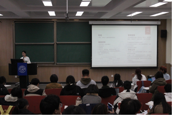 最后,李盈玉围绕项目结题阶段的流程与要求以及评优公示规则,阐释了项目收尾阶段的各项事宜与关键点;并以自身经历为引对答辩的策略模式、心理权衡等方面做了引人入胜而兼具开导性的介绍。其次,她提到了大创年会的通知时间,提醒同学留意通知、提前准备。
