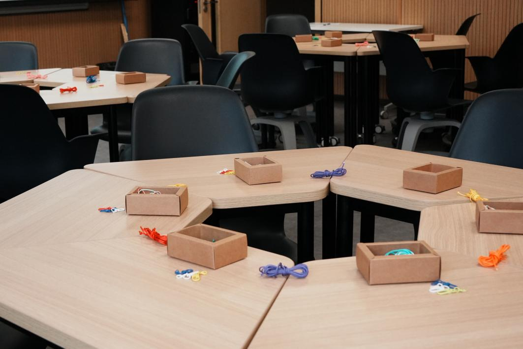 在制作体验环节,徐老师走入同学们中间,手把手指导绳编创作,耐心解答疑问。同学们沉浸于绳结的编织之中,在一缠一绕间感受非遗技艺的细腻与魅力。