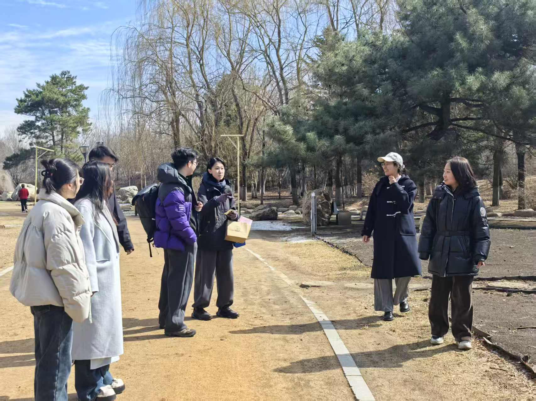 活动前期,学院研究生会周密筹备,完成路线实地踏查、参与人员信息统计与安全预案制定,明确工作人员分工,针对人员走失、天气变化、健康突发状况等风险完善应急处置流程,为活动安全有序开展筑牢保障。当日 9时30分,参与同学在百花园西门准时集合,工作人员详细讲解活动流程、安全纪律与踏青路线,活动正式启动。